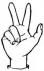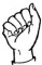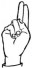 На ћирилици написано РУМЕНА ПРОТИЋ састоји се из 12 слова [?]. Исписано ћириличном једноручном азбуком за глувонеме: